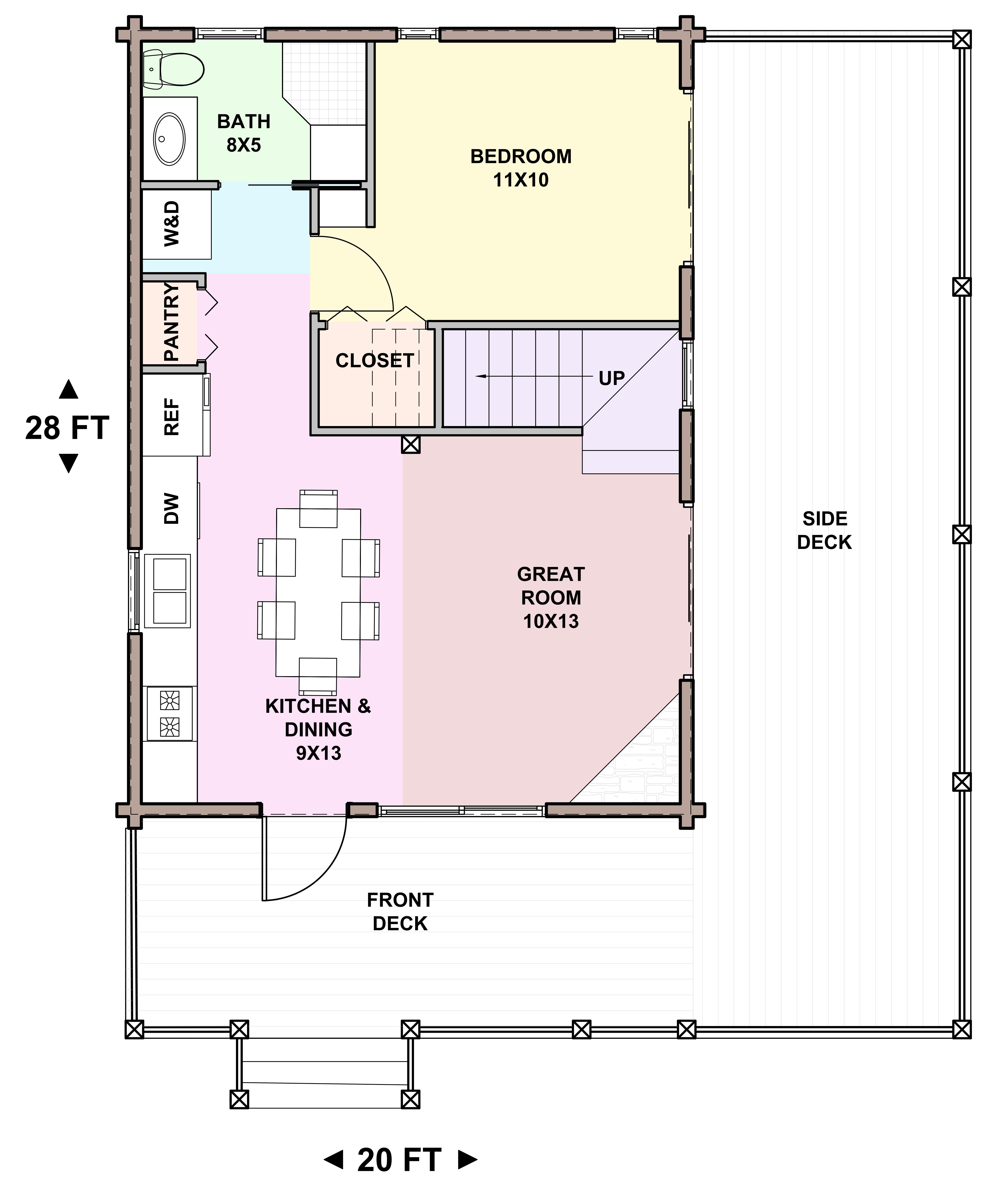 Encompassing a humble 855 square feet, the Lookout floor plan packs a punch in function and looks while complementing its natural surroundings.