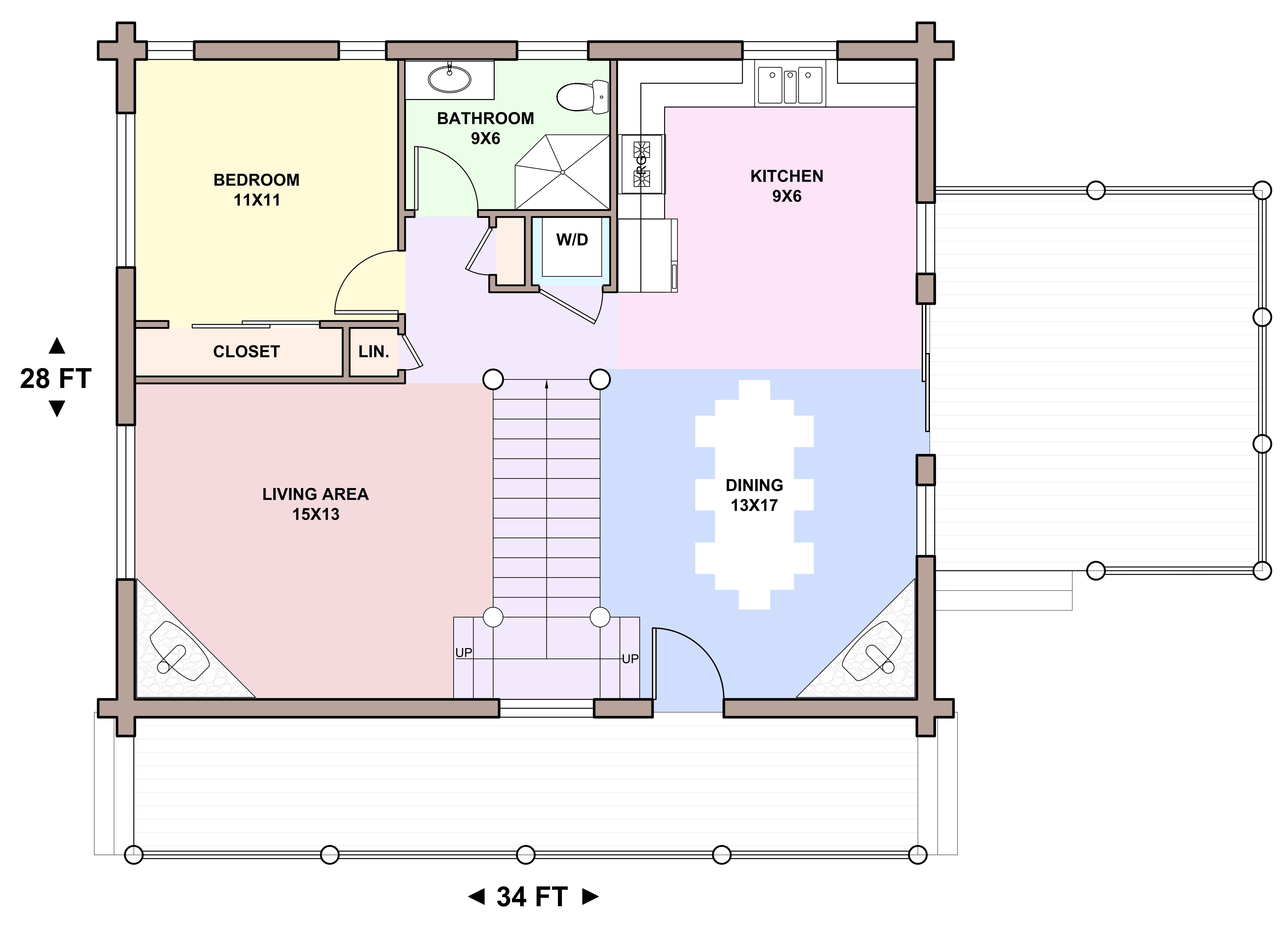 The Old Tahoe Project is a completed two-story residential log home with a total of 1,904 sq. ft. The design includes 3 bedrooms and 2 bathrooms. The main level measures 952 sq. ft., and the upper level provides an additional 952 sq. ft. The floorplan is balanced across both stories, ensuring efficient circulation and functional living arrangements. The Old Tahoe does not include a garage or basement. This project is finalized and available for inclusion in the technical gallery and project database.