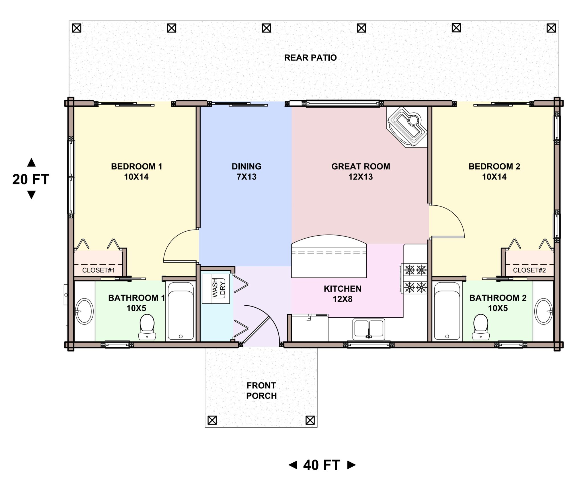 This charming design was originally envisioned as a fishing cabin nestled by a tranquil river. The heart of the home is centered in the layout, creating a warm and inviting atmosphere. Flanking either side, you’ll find two identical bedrooms and two bathrooms, perfect for sharing memorable moments with loved ones while enjoying the serenity of the cabin. We’ve adorned the rear of the home with expansive glass windows, allowing you to gaze at the river’s beauty from the comfort of your living space. An 8-foot deep covered porch stretches along the entire length of the home, inviting you to savor year-round outdoor living. This design is not just a dwelling; it’s a perfect accessory dwelling unit (ADU) that embraces the essence of cozy living. The roof, currently styled in a 6:12 gable, can also be transformed into a sleek shed-style roof for a modern twist. Experience big living in a small footprint. Fora quote or more information on this model, call the office at 530-899-0680 and ask for Larry and/or email larry directly at larry@sierraloghomes.com